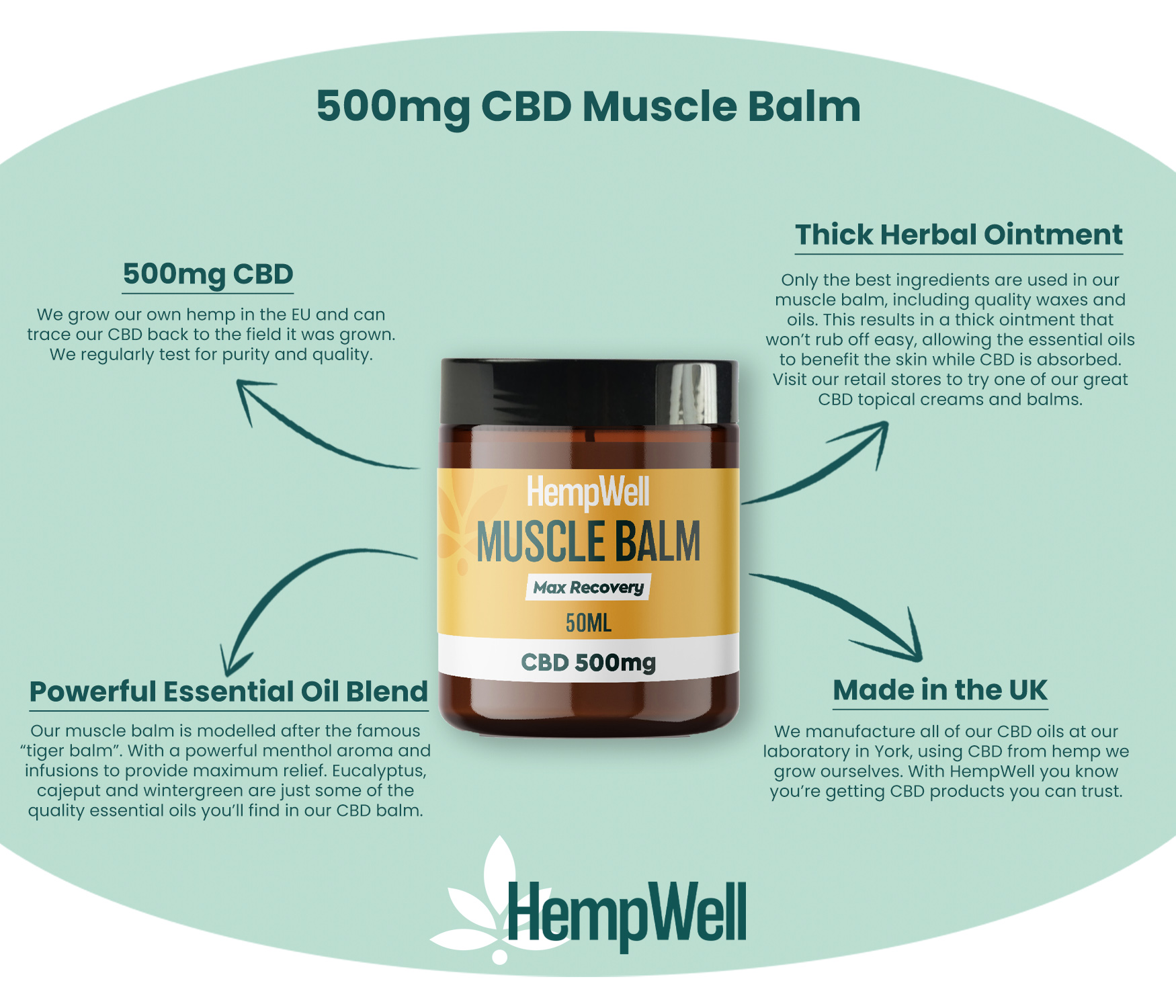 HempWell CBD Muscle Balm | 500mg CBD | 50ml Glass Jar